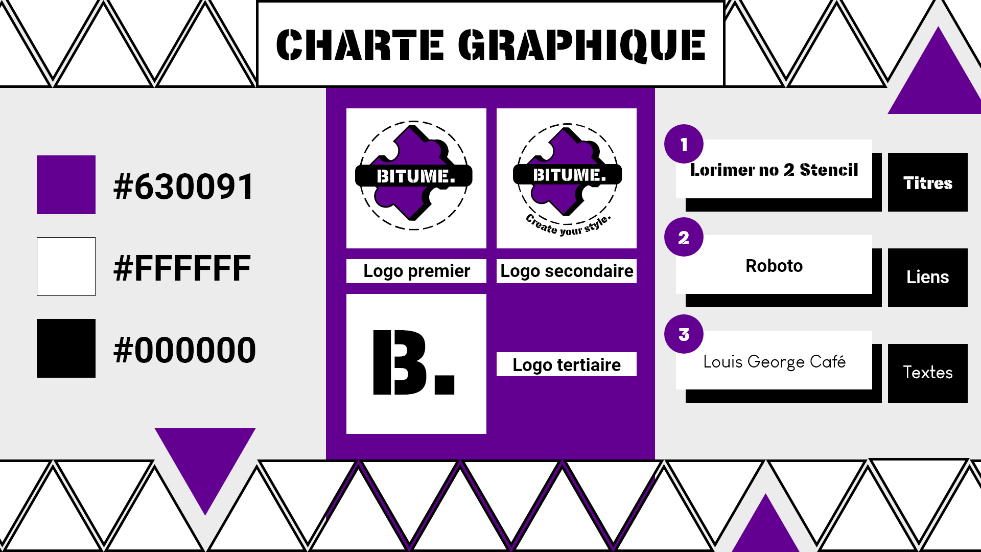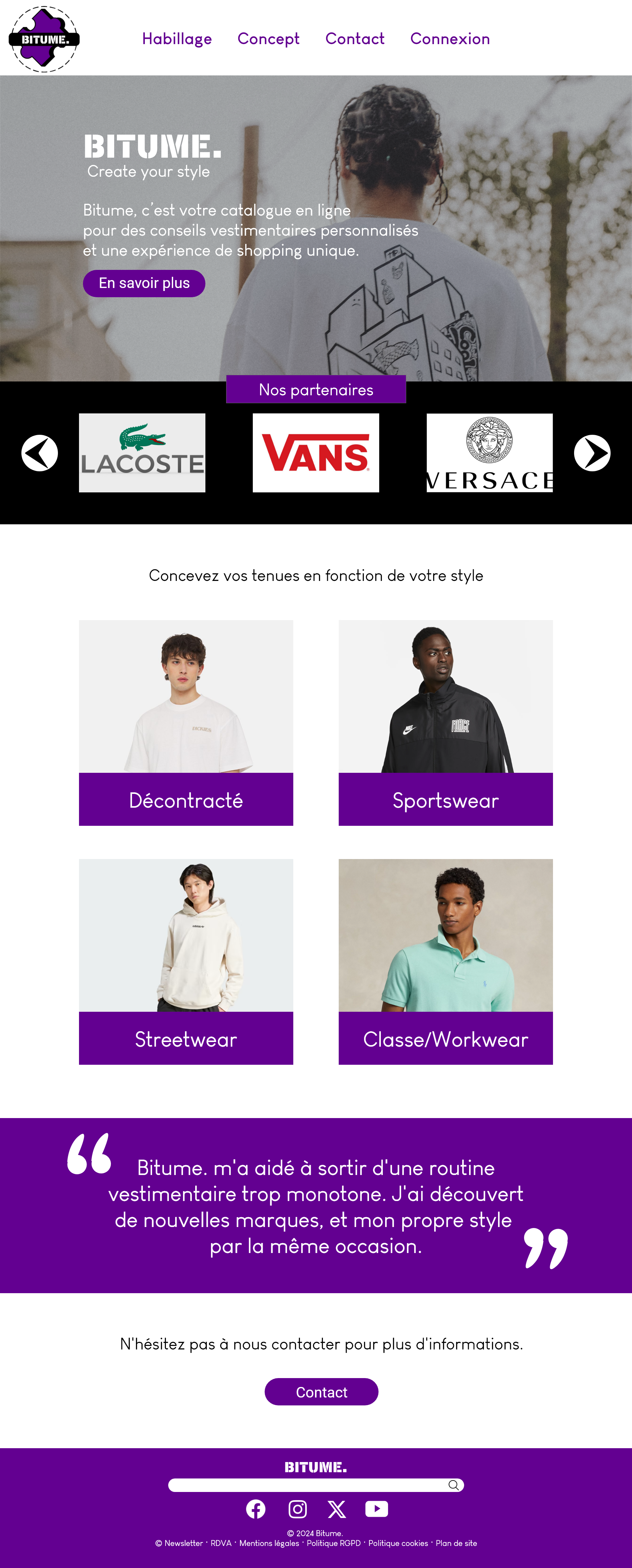 "BITUME." est le nom de mon projet de fin d'année de première année de master. Nous devions, en groupe de cinq étudiants, créer l'identité graphique et le site web d'une marque fictive en développement du nom de "Bitume", entreprise qui propose à ses abonnés de composer leurs tenues vestimentaires en fonction de leurs envies du moment. Nous avions deux mois de réflexion et d'exécution clôturés par une présentation orale.